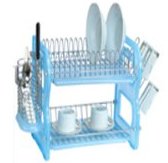 Our Two-Tiered Dish Rack System features sturdy construction and space saving design Chrome plated steel and heavy duty plastic with glass rack flatware holder. Use the top tier for dishes, bottom tier for saucers, cups, bowls etc, Perfect for any home,camper, dorm or RV. Color coordinate your kitchen decor with this fabulous Dish Rack. The only one of it's kind sold on Amazon. Also sold in Red, Pink and Yellow on Amazon. Assembled each measures: 22" x 10" x 14" Home Decor Blue.