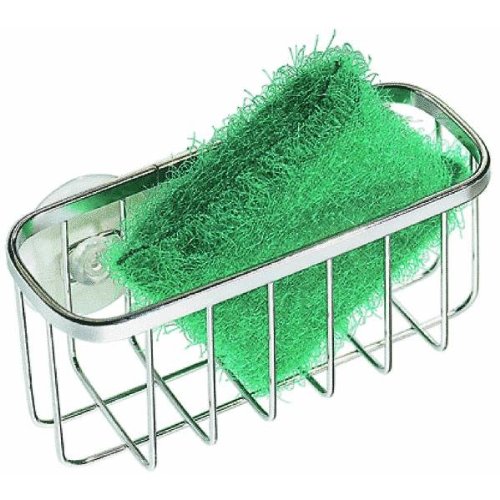 Mount this stainless-steel holder by the sink wherever sponges and brushes are needed--in the house, in an RV, or on a boat. Its two suction cups adhere to any flat surface, such as glass, mirror, tile, or metal. At 5-1/4 inches wide and 2-1/4 inches deep, it's big enough to hold both sponges and brushes. This sturdy, rigid holder is chrome-plated for long-lasting beauty.